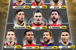 體育資訊4月3日訊 Score90盤點(diǎn)了本賽季五大聯(lián)賽球員在各項(xiàng)賽事參與進(jìn)球最多的11人陣容,其中薩拉赫、凱恩、拉菲尼亞領(lǐng)銜鋒線,門將位置是貢獻(xiàn)3次助攻的埃德森,具體陣容如下(進(jìn)球+助攻):