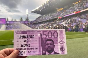 巴拉多利德球迷協(xié)會和Fondo Norte 1928球迷組織印刷了6萬張帶有大羅頭像的假鈔,面額為500歐元,并在賽前分發(fā)給球迷們。羅納爾多在2018年買下巴拉多利德俱樂部時(shí)花費(fèi)了3000萬歐元,而這些假鈔的總額正好是這個數(shù)字。