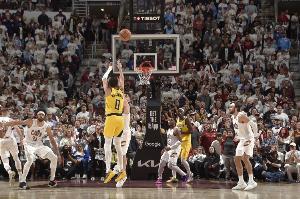 由于裁判沒有吹罰,哈利伯頓在第2罰彈筐而出后,自己搶到籃板,隨后拉到外線迎著防守命中絕殺三分!