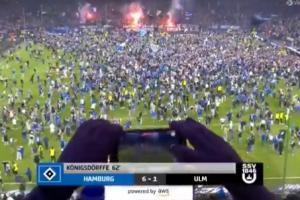 比賽結(jié)束的哨響后,漢堡球迷涌入場內(nèi)瘋狂慶祝升級。