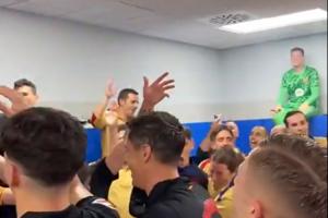 巴薩發(fā)布球隊(duì)賽后在更衣室唱歌慶祝的視頻,視頻中什琴斯尼坐在后面更衣室柜子上抽著雪茄笑著看大家慶祝。