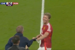 體育資訊05月17日訊 英超第37輪,曼聯(lián)0-1不敵切爾西,比賽第70分鐘,裁判發(fā)現(xiàn)霍伊倫偷偷戴表,后者一臉笑容地將手表交給場(chǎng)邊的工作人員,鏡頭給到主帥阿莫林,他面色鐵青。