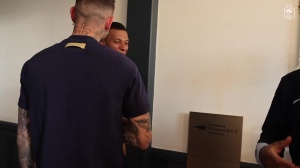 法國國家隊官推曬視頻,5位剛剛奪得歐冠冠軍的球員到國家隊報到,隊長姆巴佩開心大笑,與他們握手擁抱親切互動。