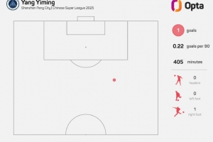31.85 - 楊一鳴在上輪對陣河南隊的進(jìn)球是深圳新鵬城在中超的最遠(yuǎn)距離進(jìn)球(31.85米)。世界波 ??