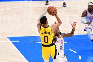 比賽最后時(shí)刻,哈利伯頓投進(jìn)了絕殺中距離,完成了15分大逆轉(zhuǎn)。