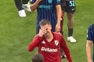 TYC體育報道,賽后17歲河床中場馬斯坦托諾痛哭離場。