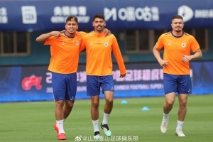 6月29日下午,山東泰山隊在鄭州航海體育場進行賽前踩場訓(xùn)練,積極備戰(zhàn)明天與河南俱樂部酒祖杜康的中超聯(lián)賽。 ???