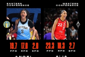 體育資訊7月2日訊 今日,WNBA官方宣布,芝加哥天空內(nèi)線安吉爾-里斯和拉斯維加斯王牌內(nèi)線阿賈-威爾遜當(dāng)選第6周東西部最佳球員。