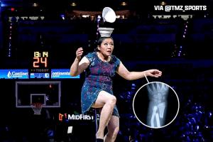 體育資訊07月03日訊 昨日WNBA總裁杯,狂熱擊敗山貓奪冠,頂碗大媽Red Panda在中場(chǎng)表演進(jìn)行不到一分鐘便從獨(dú)輪車上摔下來(lái),最終坐上輪椅離開(kāi)。