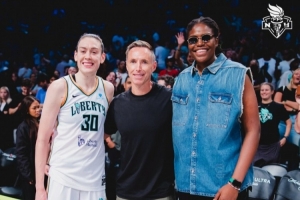 體育資訊7月4日訊 在今天紐約自由人主場89-79擊敗洛杉磯火花的比賽中,NBA名宿納什來到了現場觀戰(zhàn)。而在賽后自由人隊的斯圖爾特以及瓊奎爾-瓊斯都與納什熱情寒暄,而有意思的是在與兩人的合影中,納什反而成為了身高最矮的那一個。
