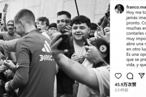 我滿懷感激離開(kāi)。感謝球迷無(wú)條件的愛(ài),感謝俱樂(lè)部每個(gè)人的栽培,感謝隊(duì)友共享這份激情,更感謝我的家人始終相伴。河床教會(huì)我:追夢(mèng)需要謙卑、拼搏,還有對(duì)球衣的熱愛(ài)。