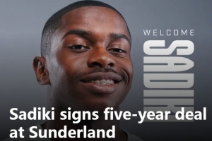 體育資訊7月5日訊 英超升班馬桑德蘭官方宣布,簽下20歲的民主剛果中場(chǎng)諾亞-薩迪基,雙方簽約五年。