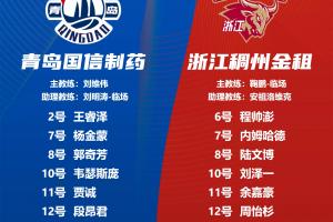 體育資訊04月10日訊 今日,CBA季后賽12進8,青島和浙江進行搶三大戰(zhàn)!