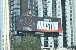 體育資訊7月8日訊 體育播客主持人Jeremy Branham今天曬出了休斯敦歡迎杜蘭特的廣告牌。