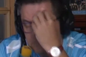 在皇馬被打進(jìn)第二球后,鐵桿皇馬球迷&《阿斯報(bào)》主編龍賽羅摸頭、捶腿、搖頭,顯得很無奈。