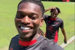體育資訊7月10日訊 米蘭邊鋒萊奧今天在Instagram曬出自己與丘庫埃澤的搞怪視頻。