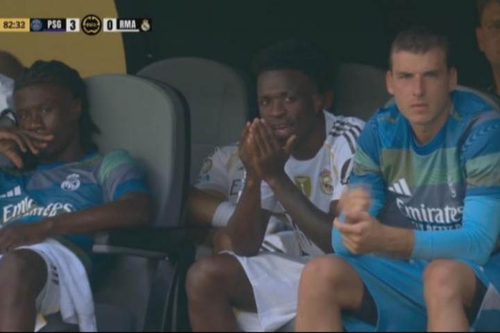 體育資訊07月10日訊 世俱杯半決賽,皇馬0-4負(fù)于巴黎圣日耳曼,維尼修斯因被拍到在皇馬0-3落后時(shí)偷笑,受到了球迷的批評。