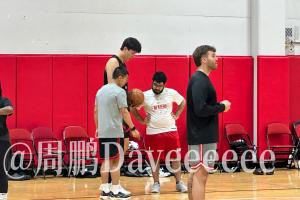 周鵬表示,開拓者開放了今天在拉斯維加斯訓練的最后時間段,楊瀚森繼續(xù)在夏聯主教練伯瑞爾和助教斯普利特的協助下進行加練,定點三分依然是主要加練項目。