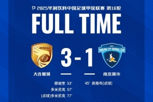 全場比賽結(jié)束,南京城市客場1-3不敵大連鯤城。