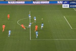 比賽第4分鐘,姜至鵬后場(chǎng)拿球被斷,澤卡一撥,卡扎伊什維利得球后兜射死角破門!泰山1-0領(lǐng)先新鵬城!
