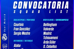 體育資訊4月16日訊 北京時(shí)間明天凌晨3點(diǎn),歐冠1/4決賽次回合皇馬主場(chǎng)對(duì)陣阿森納,皇馬公布此役大名單。首回合停賽的瓊阿梅尼回歸,塞巴略斯在列。