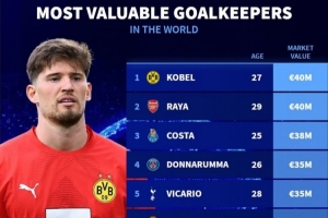 體育資訊4月5日訊 德國轉(zhuǎn)會市場今天盤點了世界足壇門將球員的身價排名,多特蒙德的科貝爾以及阿森納的拉亞4000萬歐元并列第一。