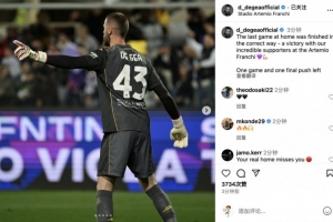 賽后,紫百合門(mén)將德赫亞更新社交媒體鼓勵(lì)球隊(duì)在末輪最后一搏,并寫(xiě)道:“主場(chǎng)收官戰(zhàn)在弗蘭基球場(chǎng)以應(yīng)有的方式落幕,在主場(chǎng)與不可思議的球迷們共享勝利??????。還剩最后一場(chǎng)比賽,最后一搏!”