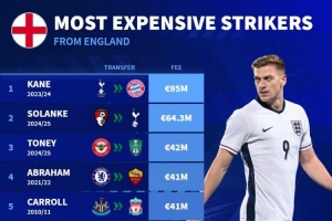體育資訊6月5日訊 德國(guó)轉(zhuǎn)會(huì)市場(chǎng)統(tǒng)計(jì)了英格蘭中鋒的轉(zhuǎn)會(huì)費(fèi),并列出榜單,凱恩9500萬(wàn)歐居首,德拉普3565萬(wàn)歐排名第7位。