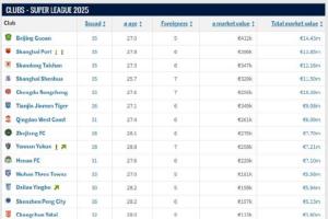 體育資訊06月19日訊 轉(zhuǎn)會市場網(wǎng)2025年中期中國身價例行更新今天完成,對比上次更新,各俱樂部的身價發(fā)生了不少變化。