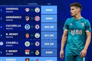 體育資訊6月26日訊 科爾克茲正式轉(zhuǎn)會(huì)加盟利物浦,德轉(zhuǎn)也盤點(diǎn)了足壇歷史左后衛(wèi)球員轉(zhuǎn)會(huì)費(fèi)榜單,其中格瓦迪奧爾居首,科爾克茲第7,具體如下: