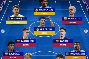 前鋒:阿爾貝托-莫萊羅(比利亞雷亞爾,2500萬(wàn))、恩德里克(皇馬,3500萬(wàn))、亞馬爾(巴薩,2億)