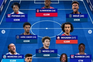 體育資訊7月5日訊 《轉(zhuǎn)會(huì)市場(chǎng)》統(tǒng)計(jì)了法甲U21球員最貴陣容,巴黎4將在列。