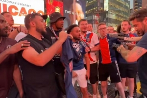 巴黎球迷聚集在紐約時(shí)代廣場(chǎng),他們載歌載舞,為球隊(duì)助威,預(yù)熱決賽,巴黎官方社媒曬出視頻。